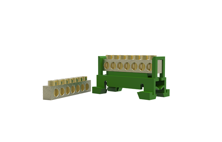Borneira 7 furos com suporte din verde