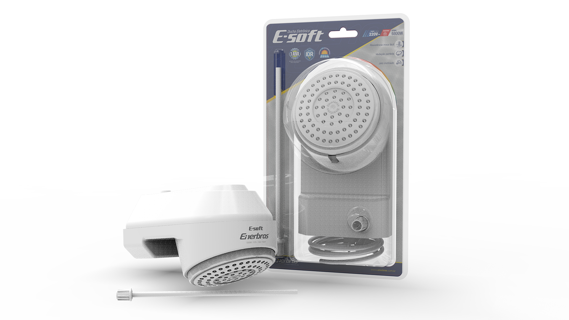 Seja para energizar, relaxar, refrescar ou esquentar, a ducha E-Soft é pra todo mundo. Todo mundo que quer tomar um banho de qualidade, sem gastar muito com isso. A ducha eletrônica E-Soft é para você que ama eficiência e excelente custo-benefício. E-Soft possui controle eletrônico de aquecimento para você escolher a temperatura do seu banho. É simples de instalar e tem resistência troca-fácil. Com o conforto do jato inclinado, é perfeita para todos os tamanhos de box. E-Soft é uma ducha eletrônica que dá um banho nas outras duchas!