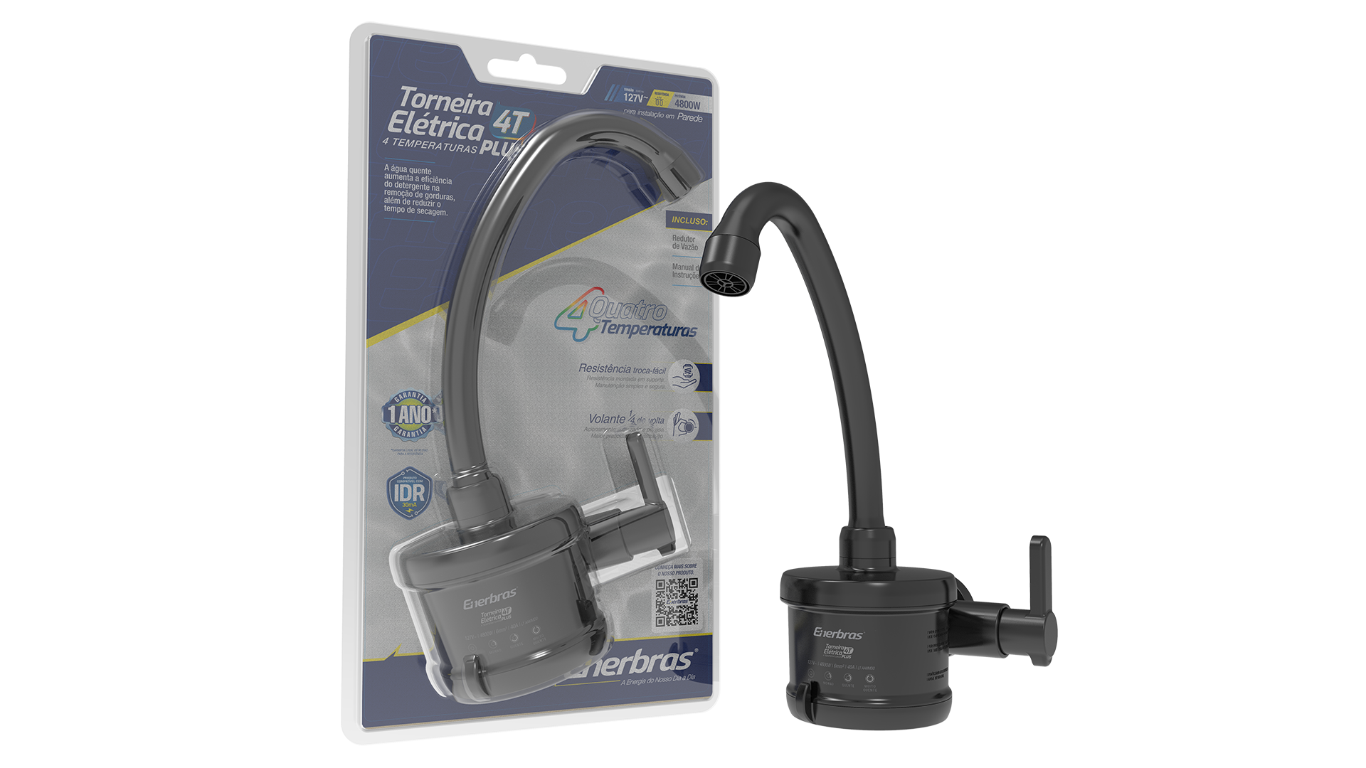 Linhas agradáveis combinadas com resistência, qualidade e funcionalidade definem a Torneira Elétrica Enerbras. Para maior facilidade de uso, conta com bica elevada e volante anatômico, além de possibilitar ajuste para quatro temperaturas